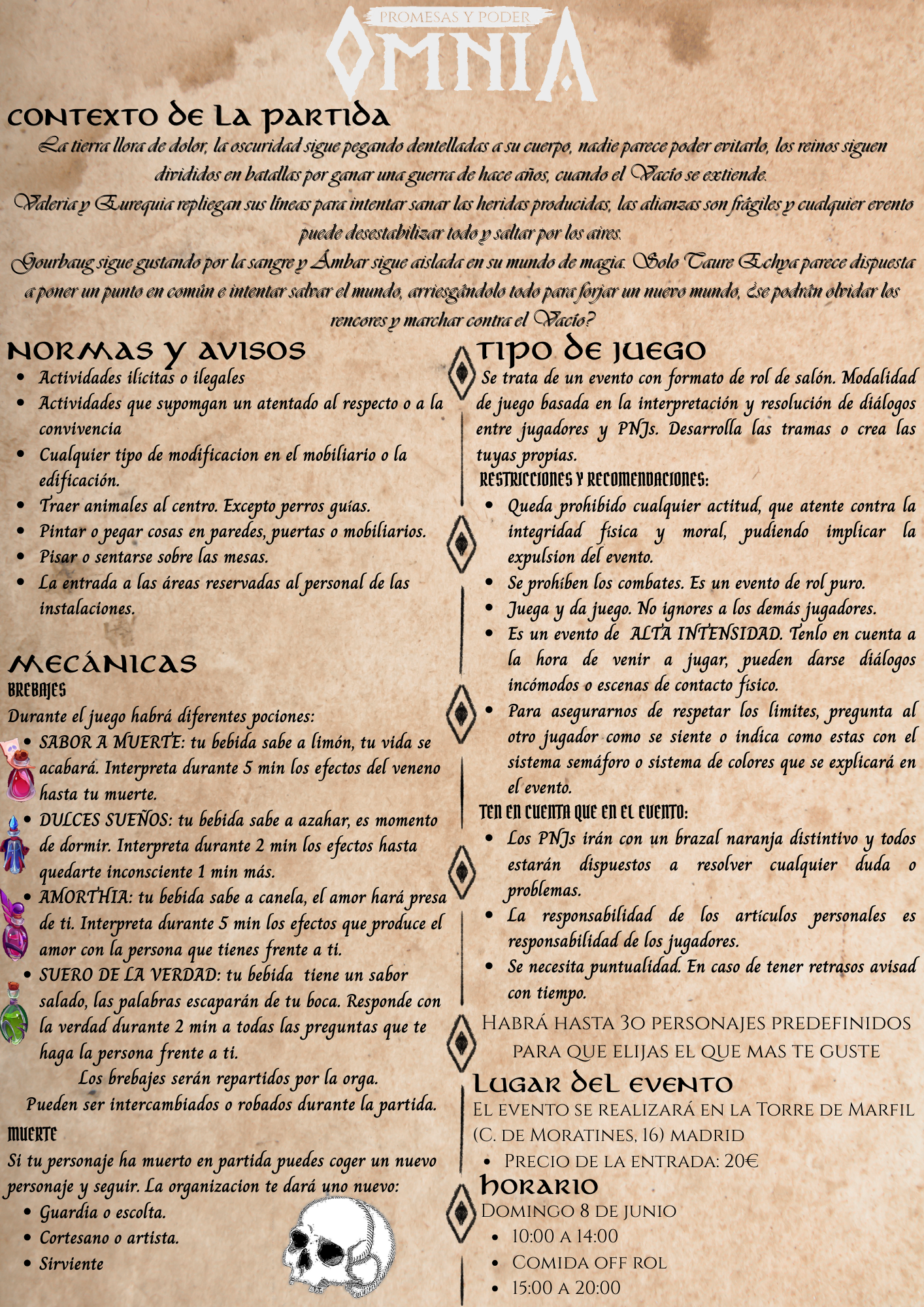Se trata de un evento de Rol en Vivo ambientado en un mundo de fantasía oscura y medieval, donde la interpretación, la intriga y el conflicto entre personajes son el eje central de la experiencia.